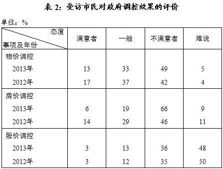 2、政府调控效果:对物价、房价调控的不满者增多。