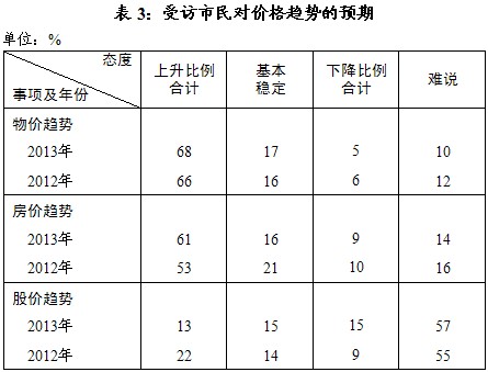 ——2013年度物价、房价和股价北上广市民看法