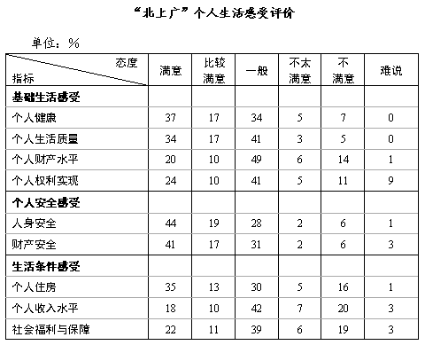 ——作为中国的高端城市,“北上广”具有相对优越的生活,市民生活主要方面的感受,有着较高的满意水平和普遍的接受程度;