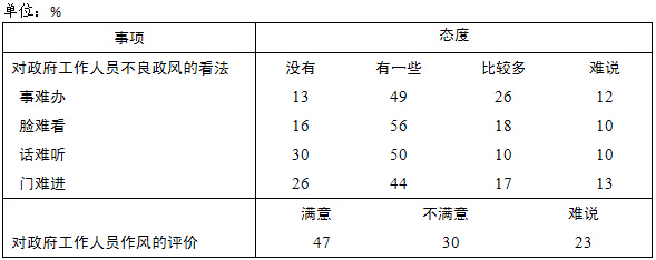 当前位置网站首页>数据库>政府工作人员作风广州市民看法数据表