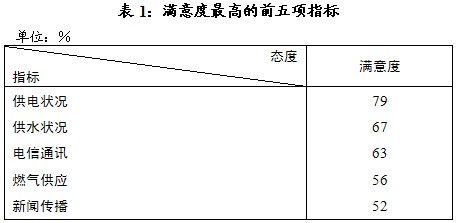 在5大方面的基本状况中,社会服务方面的评价最好,多达9项指标评价以满意居多,供电、供水、燃气、电信、新闻传播等满意者更超过五成,在本次民调中最高。