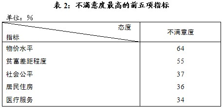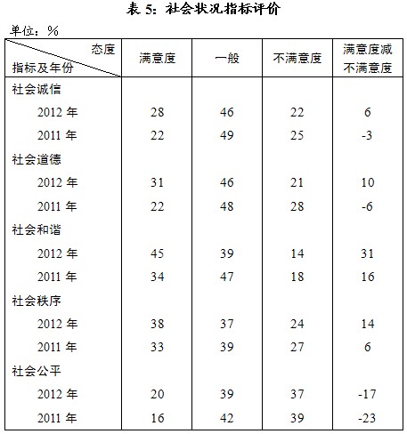 “社会公平”满意者也有增加,但仍明显少于不满者17个百分点(见表5)。