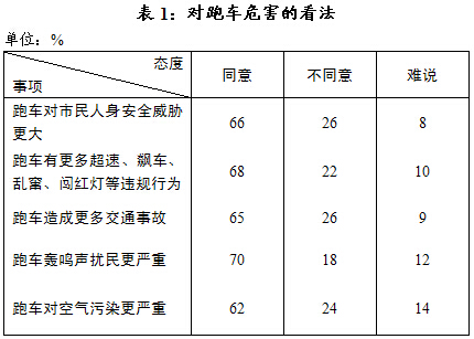 二、多数市民认同市内开跑车危害公共利益