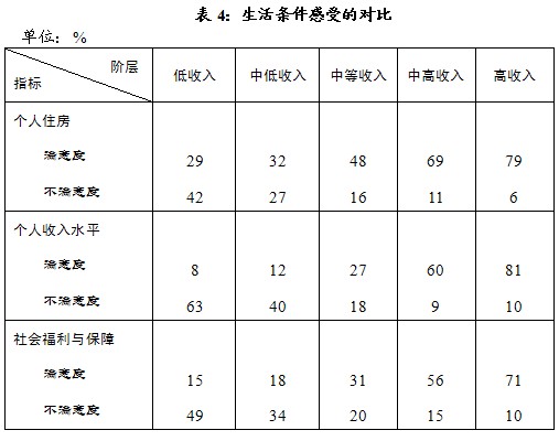 各层人群生活感受的对比