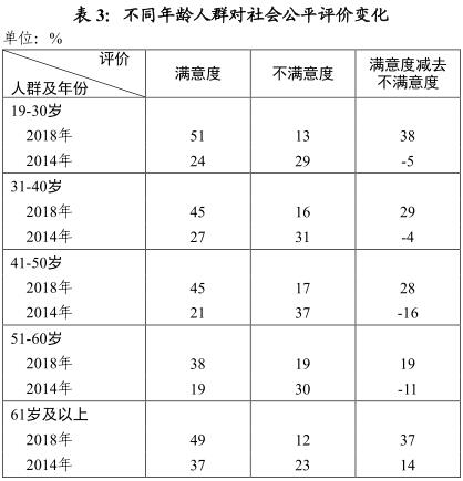 对比之下,51到60岁中老年人评价虽有改善,但满意度不过四成,为38%,比其他年龄人群都要低(见表3)。