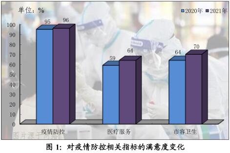 与此相关,市民对卫生健康方面的评价再上一个台阶,医疗服务的满意度从2020年的59%升至2021年的64%,市容卫生从64%升至70%(见图1)。
