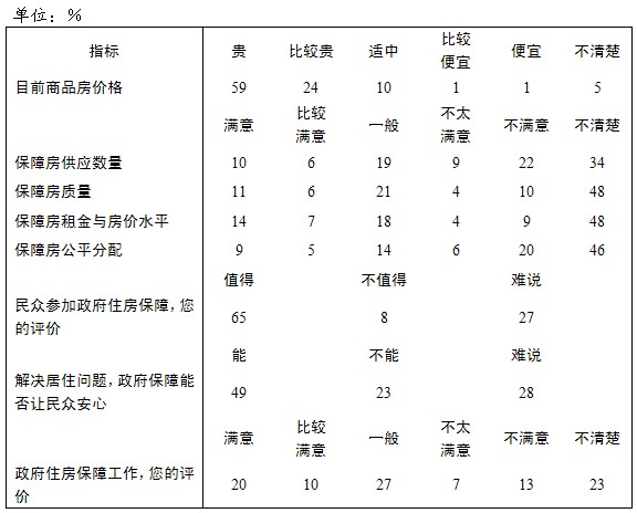 当前位置网站首页>民调社评>全国城镇居民住房保障评价数据表