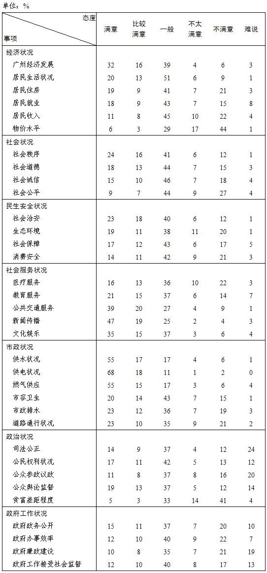 当前位置网站首页>数据库>2013年度广州城市状况市民评价数据表